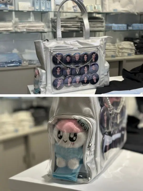 様々な応援グッズが入れられ、缶バッジなども飾ることができる「DECO BAG」が登場!サイドポケットにはボンボンイを入れることもできます。バッグの中は仕切りもついていて、応援グッズもスッキリ収納できる優れもの。