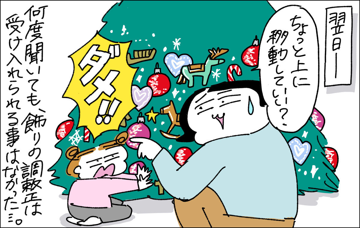 働くママなら誰もが一度は経験したことのある、思わず「わかる~!」と叫びたくなるようなエピソード= 「#ワーママあるある」。自身も2児の母であるイラストレーター・カミナカ ケロヨンさんがリアルなエピソードを4コマ漫画にしてお届け! ホリデーシーズンを前に、クリスマスツリーの飾り付けを子供達に任せたら…というお話