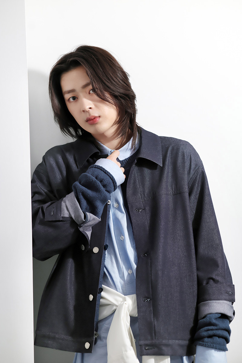 ドヒョク:ジャケット¥58,300(クルニ フラッグシップ ストア〈クルニ〉) 、カーディガン(参考商品) (コス 青山店〈コス〉) 、シャツ¥4,950(シアンPR〈キャスパージョン〉) 、シューズ¥14,300(ハルタ) 、ベルト¥7,480(ワンエルディーケー アパートメンツ〈エヴィコン〉) 、リング¥15,620(ハナ コリア〈マーガリンフィンガーズ〉) 、その他スタイリスト私物