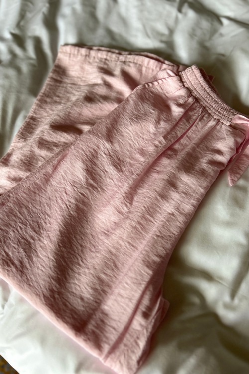 ドンスアン市場2階、細めの路地の間にあったお店で発見。青みピンクがかわいくて、やわらかい生地も涼しくていい感じ。試着させてもらい、丈もOKだったので購入。15万ドン(約900円)とお安かったので、値切らず定価で購入しました。