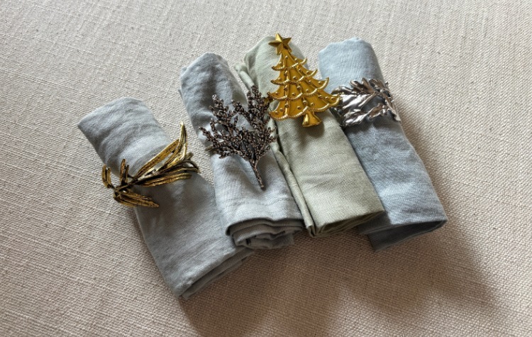 すでにスーツケースがパンパンなので、今回は食器は見送り。その代わり、クリスマスモチーフのお洒落なナプキンリングを店内の奥の奥で発見。普段テーブルコーディネートと無縁の生活を送っておりますが、テンションが高まり購入しました。肝心のナプキンも持っていないので、ナプキンも一緒に購入。全部で3000円くらい(そんなにお安くはないですね、笑)。ナプキンは、ブルー系のグラデーションにしたくて、店内で吟味に吟味に重ねたはずは、日本に帰ってきて見たら4枚中3枚が同じ色でした(爆)。まぁ、実際のところは3人家族なので特に問題はなさそうです。