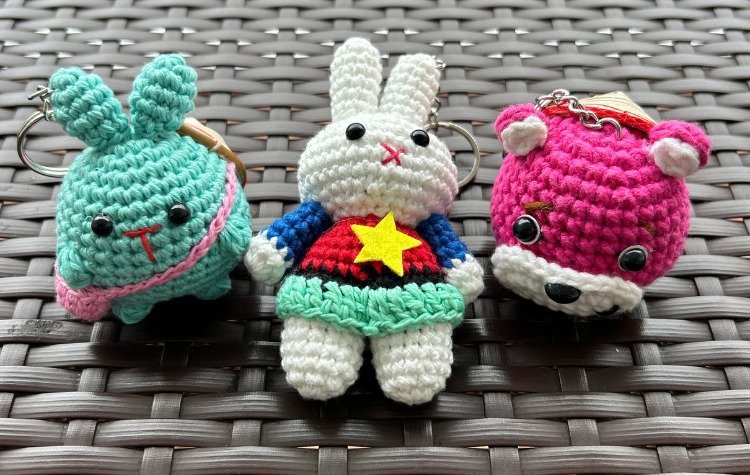 1階の噴水近くにあるお店で、後輩のお土産用に。丸いフォルムのものに弱い私。編みぐるみのかわいさにギューーーンと引き寄せられ、大量にあるバリエーションの中から3つを厳選。ベトナムらしくノンラーをかぶっている(背負ってる?)ところもナイスです。少しおまけしてもらい、3つセット12万ドン(約700円)で購入しました。
