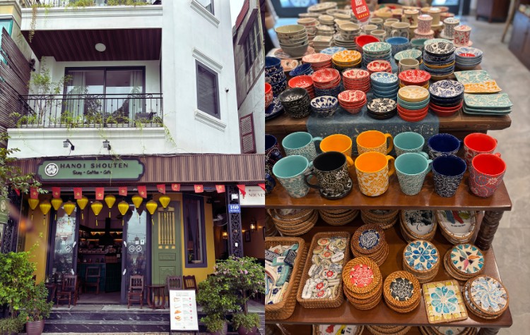 気の利いたお土産を探したいなら、「ハノイ商店」がおすすめです! 日本人オーナーのギフトショップで、食器や刺しゅう雑貨、コーヒー、チョコレート、はちみつまで、センスの光るmade in ベトナムなアイテムは一堂に会しており、あれもこれも欲しくなる期待以上のラインナップです。ハノイに3店舗あるようですが、私たちは西湖の湖畔にあるカフェも併設されている店舗を訪れました(ちなみにこのエリアは、おしゃれなカフェやショップが点在。市街地に比べて静かなので、街歩きにとてもおすすめです!)。