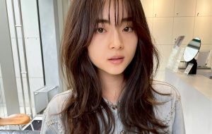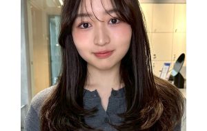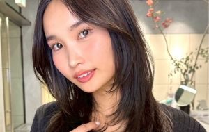顔まわりのレイヤーをバランスよく入れることで、下ろしても、うしろに流しても、どちらも楽しめる2WAYスタイル。