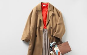 コート¥70,900(ユナイテッドアローズ 渋谷スクランブルスクエア店〈ユナイテッドアローズ〉) スウェット¥14,300・スカート¥38,500(ウィム ガゼット 丸の内店〈ウィム ガゼット〉) バッグ¥79,200(ヤマニ〈メゾン カナウ〉) 靴¥49,500(ハーモニープロダクツ オンラインストア〈ファビオ ルスコーニ〉) マフラー¥8,990(オンワード樫山〈アンフィーロ〉)