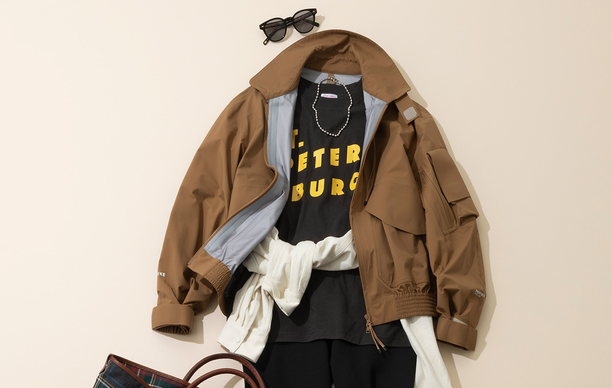 旬デザインのブラウンブルゾンが、はおるだけでカジュアル映え!