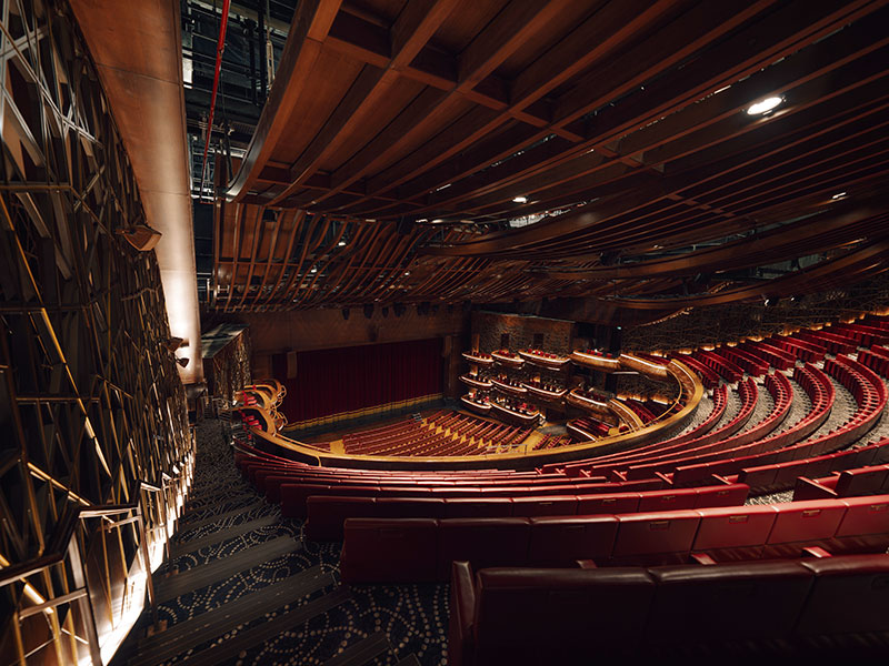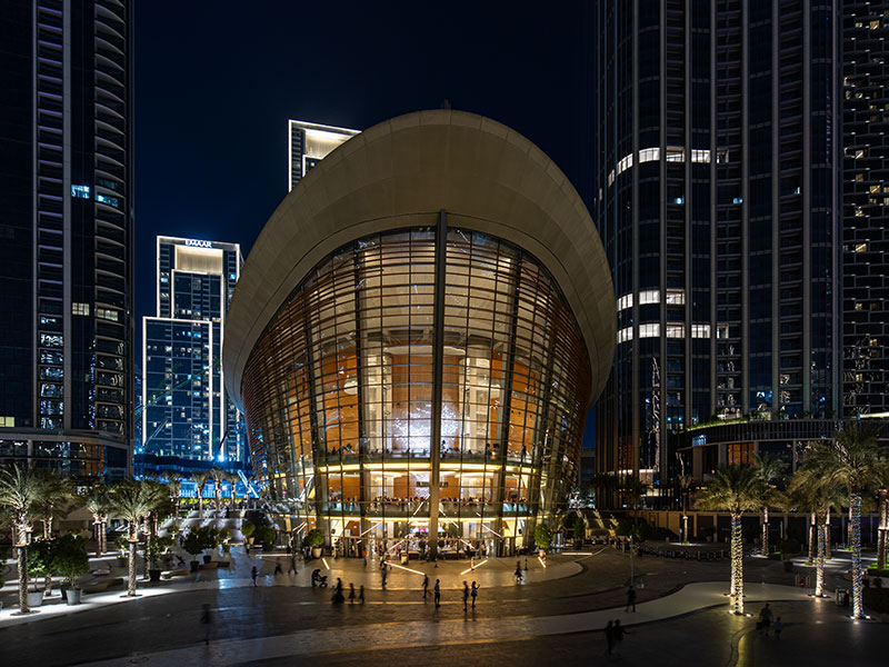 こちらのドバイ・オペラは360度全面ガラス張り。外観は伝統的なダウ船をモチーフにしているそう。ドバイの海洋の歴史へのスタイリッシュなオマージュとなっています。