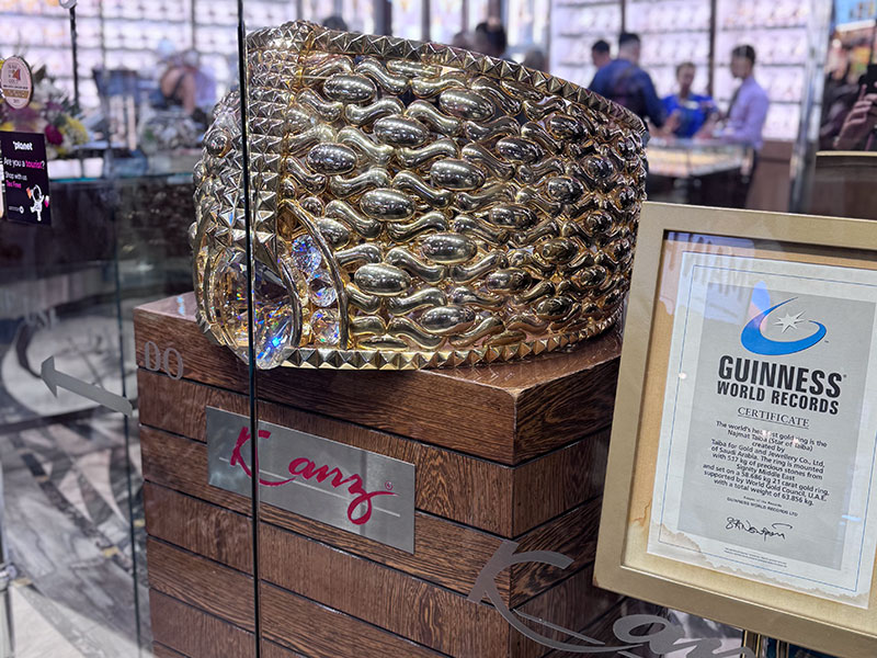 ギネス記録の金細工も発見。ガイドの方曰く、ドバイは世界で一番安く金を買えるそうです。工賃分をどれだけ下げられるかが勝負。どのお店も当日の金価格のレートで値付けをするそうで、値札はありませんでした。海外の市場は危険なところも多いですが、ドバイは安全な気がします。家族に連れられる子どもの姿もたくさん。もちろん用心することに越したことはありませんが、ガイドの方のデニムのポケットからは長財布が半分ほど出ていました(笑)。