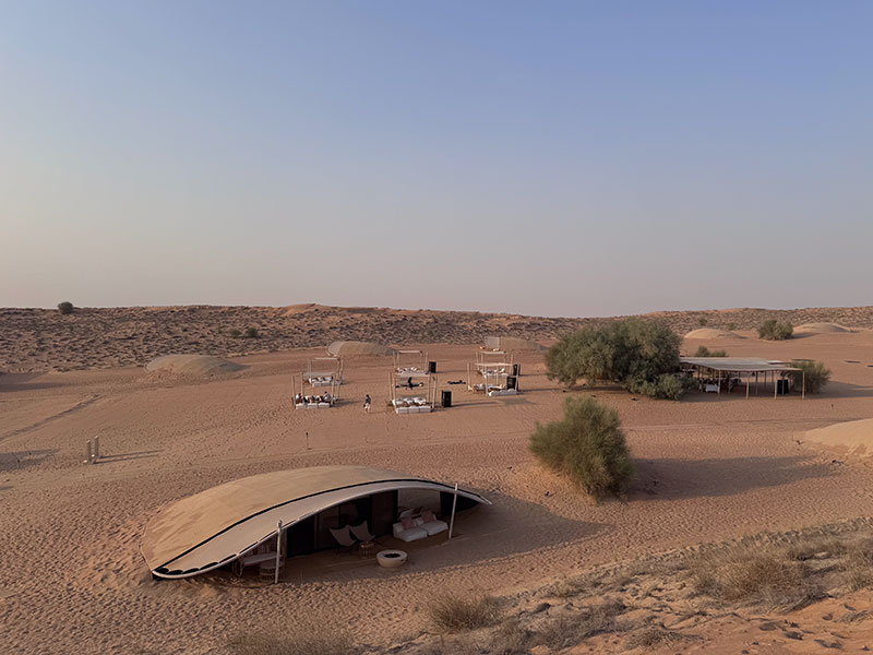 ソナラ・キャンプ(Sonara Camp)はドバイ市街地から車で約45分、ドバイの砂漠保護区内に位置しています。元銀行家の女性起業家によって手がけられた、サステナブルな高級キャンプリゾートです。今回のツアーで日本のメディアとしては初めて取材に入りました。