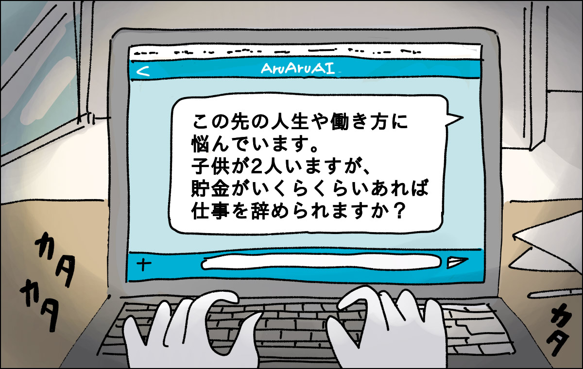 日々の忙しさに疲れ果ててしまい、仕事を辞めたいモードに突入し、ふとAIに悩みを打ち明けてみたところ返ってきた答えに、「何があってもワーママとして生き抜く所存!」と思い直す作者・カミナカケロヨンさんのお話です