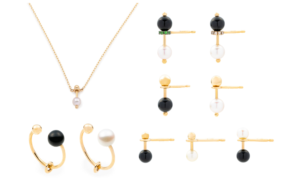 ▲(左から)HONEY ANT アコヤパール オニキス ピアス¥49,500