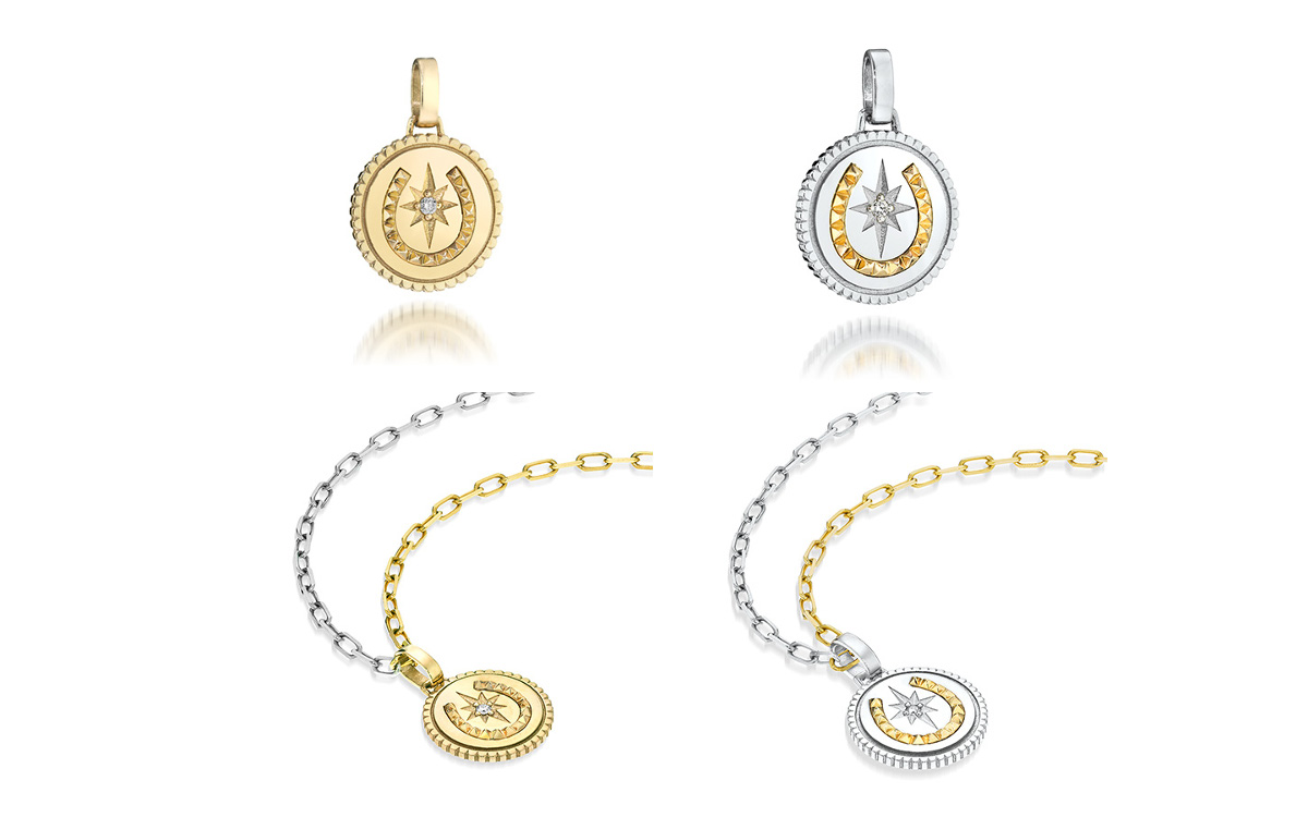 裏面には、ラッキーモチーフであるホースシューになぞらえたメッセージ“LUCK SHINES BRIGHTEST ON HORSESHOE”の文字が。イエローゴールドとシルバー×ゴールドのコンビネーションの2種での展開です。