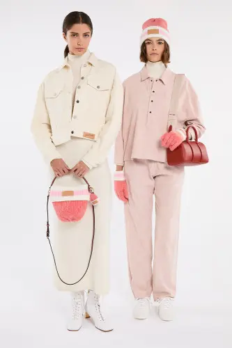 冬の定番であるセーターとビーニー、ミトンを遊び心のあるバッグに仕立てた「ル プリアージュ® コクーニング」。ピスタチオ&バーガンディまたはコーラル&ピンクの鮮やかなストライプが、コーディネートを引き立てます。