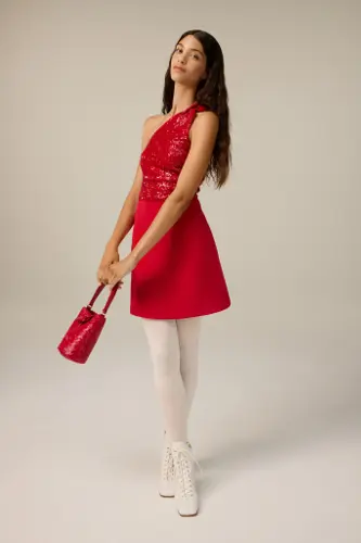 “バンブー”をトーンオントーンで配した、艶やかなレッドの「ル ロゾ スパークリング」。丁寧にあしらわれた無数のスパンコールが煌めく、パーティーシーズンにぴったりなバッグです。