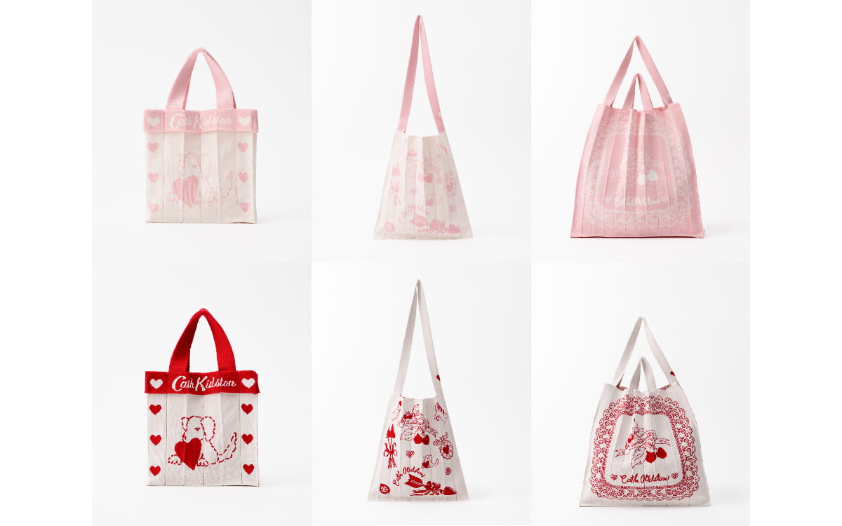 伸びきって元に戻らなくなることはほとんどない程よい伸縮性、汚れても自宅で洗濯できるイージーケア、畳んで持ち運べる実用性を兼ね備え、デイリーから旅のお供まで幅広く活躍するKNT365のバッグ。今回はバレンタインらしいキャス キッドソンのアートを落とし込みました。