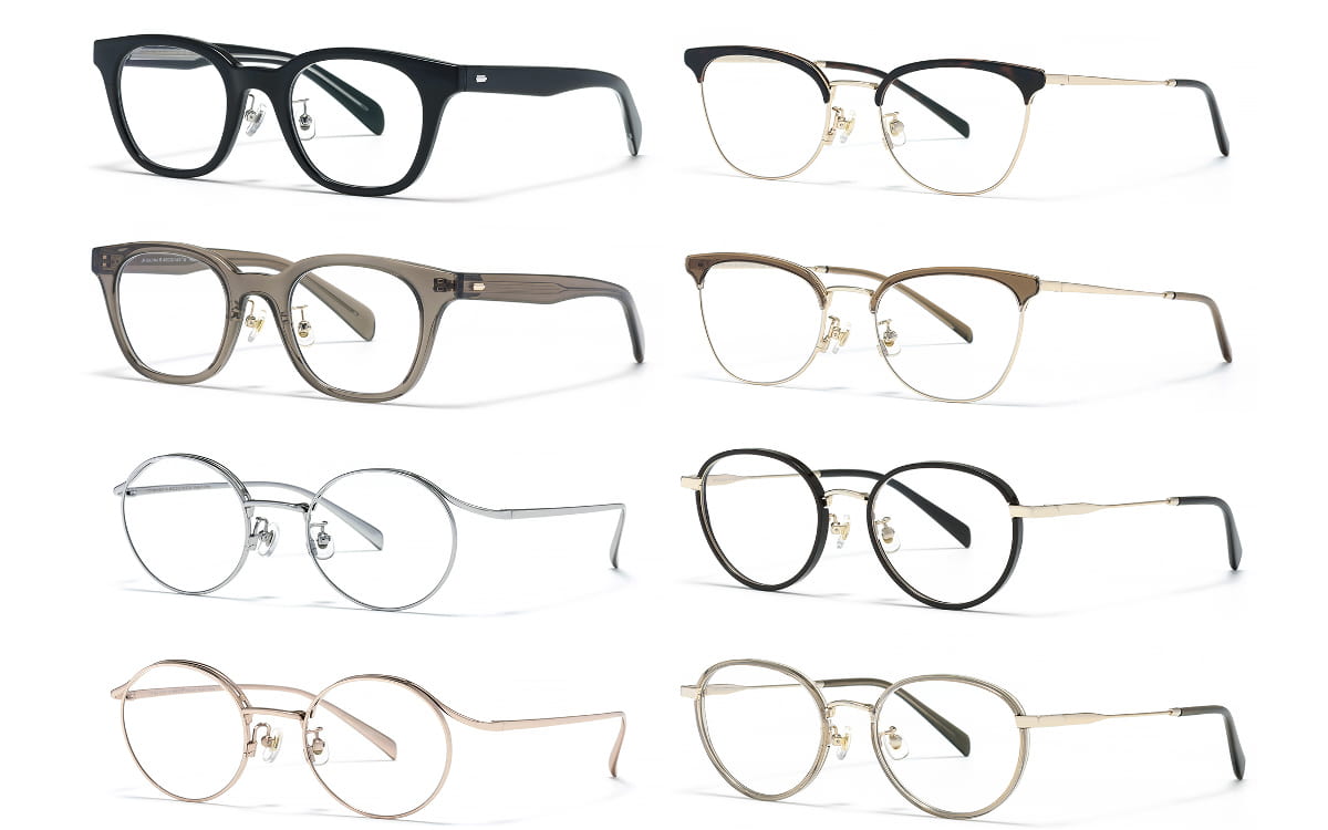 ラインナップは“大人の肌や⾻格を整えて⾒せ、かけるだけで不思議と顔があか抜ける”素材やシェイプ、ディテールに至るまでこだわり尽くした全4型8種。