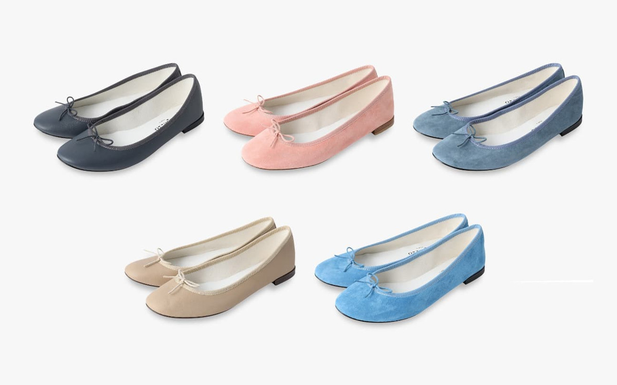 レペットとの初コラボとなる今回は、レペットの定番バレーシューズ「サンドリオン」が、春の足元にぴったりな5色でお目見え。