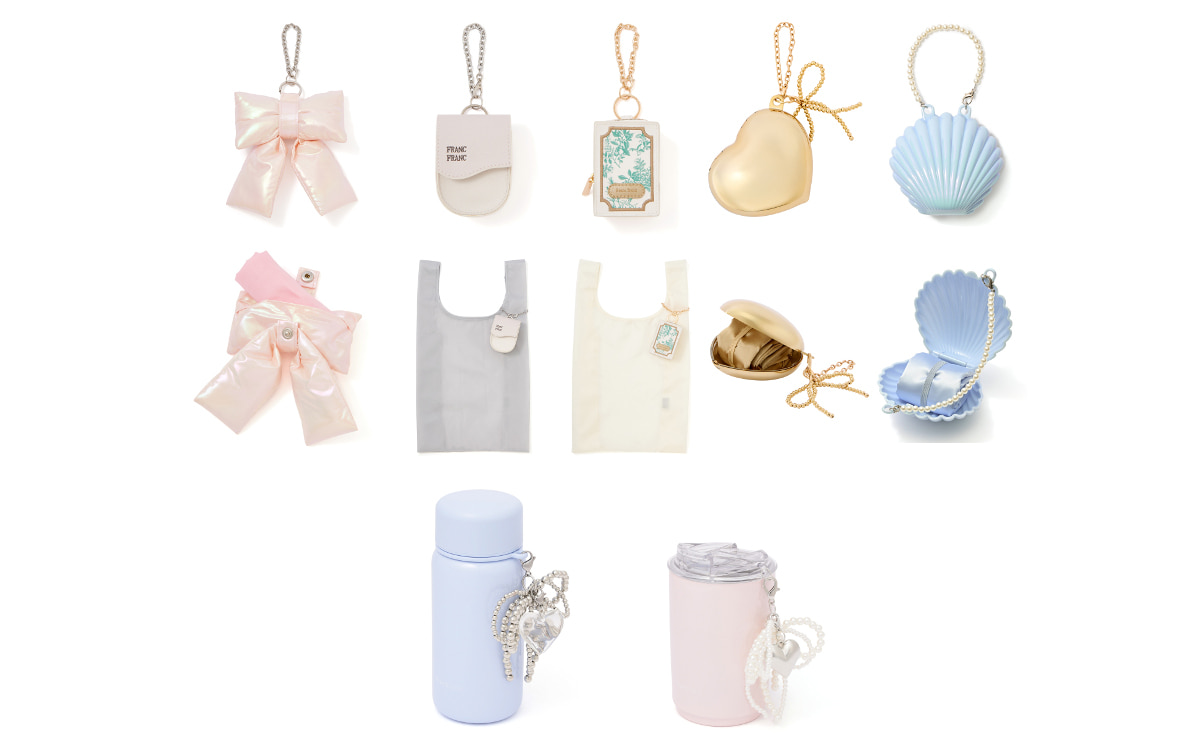 一見バッグチャーム、なのに実はエコバッグが収納されている、キュートで実用的な「バッグチャームエコバッグ」。手のひらサイズのチャーム部分に収まったエコバッグは、コンビニのお弁当などがすっきり収まるサイズ感で、雨の日にも安心して使える撥水加工付き。リボンやハートなどスタイリングのアクセントになるデザインで、日常に大活躍してくれるアイテムです。