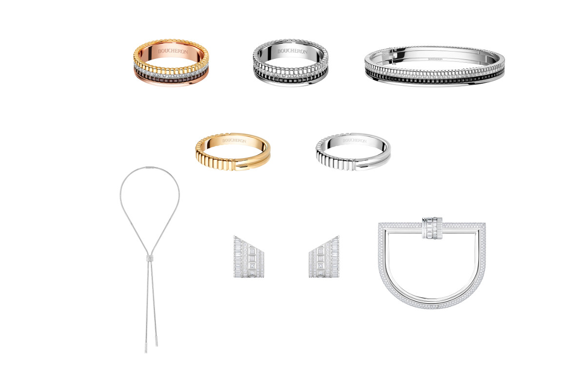 さらに、ホワイトゴールドとダイヤモンドのモノクロームの輝きが映える新作ファインジュエリーも登場。ラウンド、バゲット、プリンセスといった異なるカットのダイヤモンドでキャトルの4つのコードを表現しネックレスとイヤリング、2025年に発表されたデザインを煌めくダイヤモンドとホワイトゴールドの輝きで再解釈したバングルが揃います。