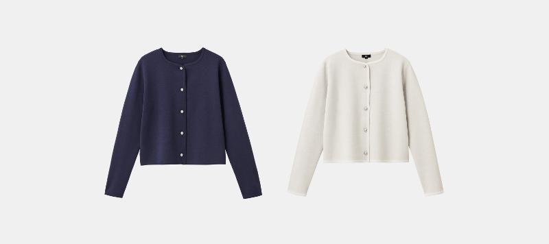 一枚でも羽織りでも活躍するノーカラーカーディガン