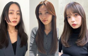 最近の韓国人気を受け、オーダーの多いロング。ポイントは、頬骨あたりにつくった短い毛束(サイドバング)。結んだ時にちょうどいい後れ毛になるし、骨格もカバーしてくれる使えるパーツです。レイヤーが入っているので、丸みのあるシルエットと柔らかさをプラスでき、好印象を約束。