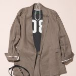 フレンチリネン100%の上質素材で仕立てたボクシーなジャケットとワイドパンツのセットアップ。ブラウンがかったカーキの絶妙なカラーリング、ラフに羽織れるボタンレスデザイン、肌にまとわりつかないオーバーサイズシルエットがそれだけでトレンド感たっぷり! 休日はハンサムな上下に、キャッチーなロゴTやハートモチーフのバッグで茶目っけを足して、感度高めに仕上げて。