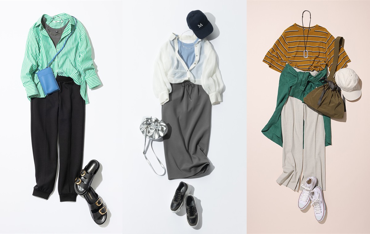 露出を抑えつつ動きやすさを重視すると、実用的すぎておしゃれを楽しめない…という悩みもあるでしょう。そこで上手に使いたいのが小物です。ハットやサングラス、バッグや靴など、トレンド感のあるアイテムでシンプルコーデにアクセントをつけると、実用性とおしゃれを両立したワンランク上の着こなしへと導いてくれます。