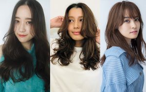 32mmまたは36mmのカールアイロンで前髪以外の髪をリバース巻き(外巻き)にします。ブラシ、もしくはクシで毛束をほぐすようにとかし、ツヤ感を出すためにオイルを馴染ませる。前髪はドライヤーで根本を立ち上げ、毛先はカールアイロンでリバース巻きに。デジタルパーマの場合はオイルなど、好みの質感が出るスタイリング剤でカールを整えればOK!