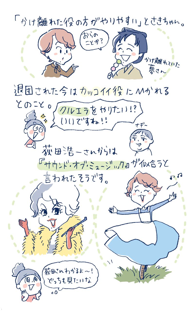 また、退団後初のコンサート『no man’s land』で演出をしてくださった荻田浩一さん(元宝塚歌劇団の演出家)が、「『サウンド・オブ・ミュージック』が似合いそう。大草原を駆け回って、大自然の中で歌うのがとっても合いそうだよ」と言ってくださったのがすごくうれしかったので、いつかそんな役もやってみたいですね。