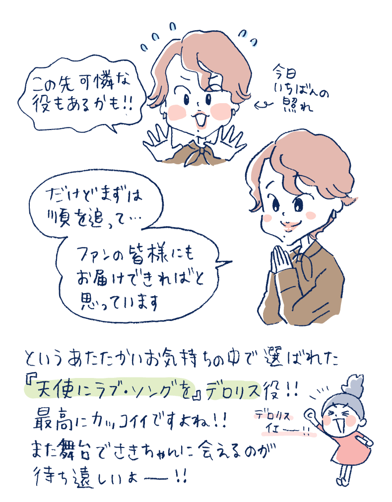 舞台上で着替えたり、主演の沖田総司役の早霧(せいな、さぎり・せいな/元雪組トップスター)さんとふたりきりの立ち回りがあったりして、たくさんお稽古を積んでも毎公演緊張していましたね。大好きな作品だからこそ、役を懸命に生きていたことが強く印象に残っているのかもしれません。