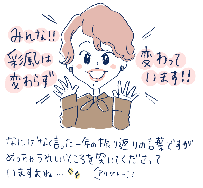 彩風:タカラヅカを卒業して1年が経ちましたが、「彩風は変わらずに、変わっています」(笑)。いろいろなことを見て、学んで、感じて、それを活かしていけたらいいなと考えています。相変わらず宝塚歌劇が大好きですので、みなさまと同じタカラヅカファンの一員としてこれからの推し活を楽しみたいと思います。